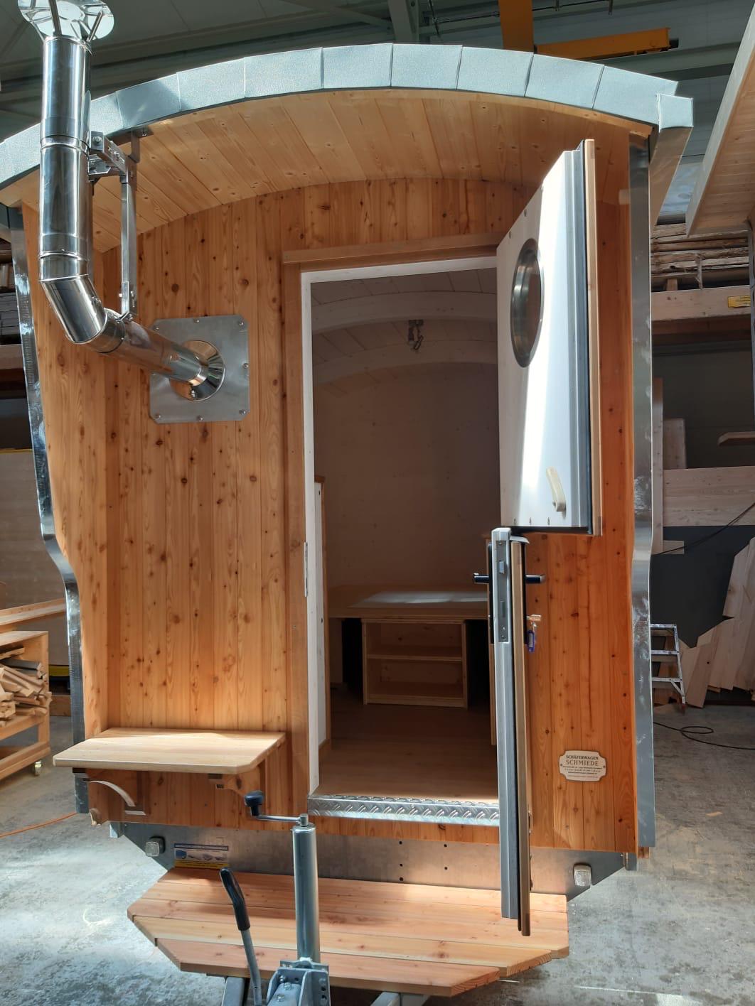 Ob als Ruheort, Infozentrum oder gemütlicher Schlafplatz unter freiem Himmel – dieser Wagen bietet Mobilität, Komfort und Natürlichkeit in einem kompakten Format.