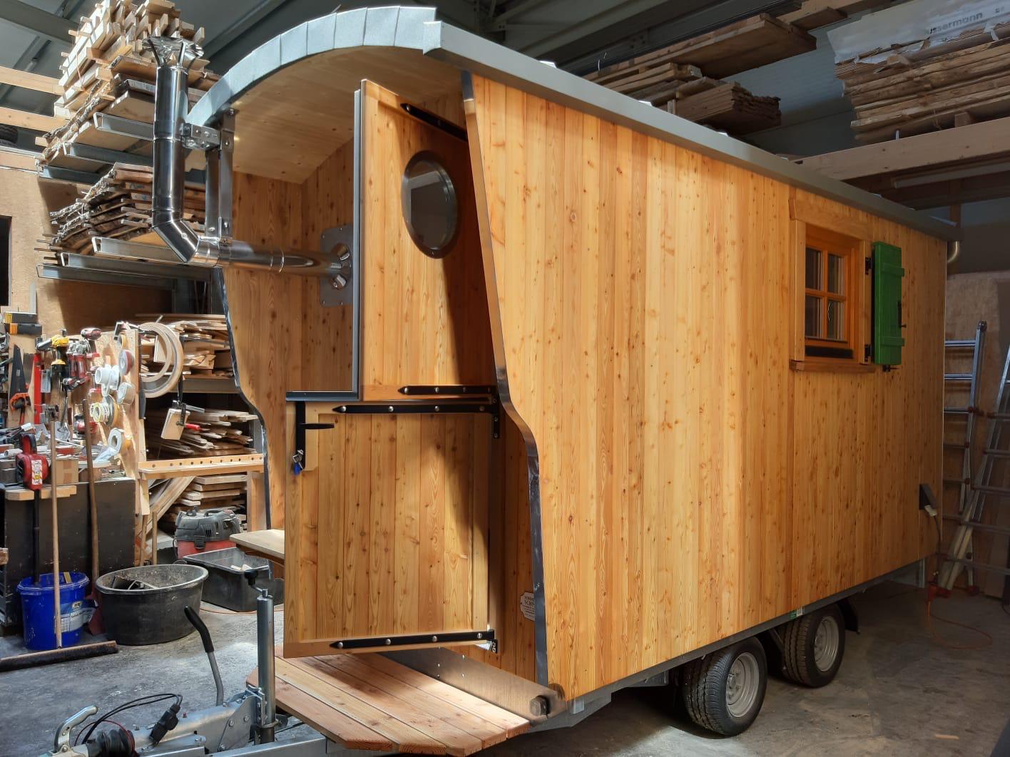 Ursprünglich als Unterkunft für Wanderschäfer gedacht, wurde dieser Wagen neu interpretiert – für Menschen, die draußen leben und arbeiten, ohne auf Komfort zu verzichten.