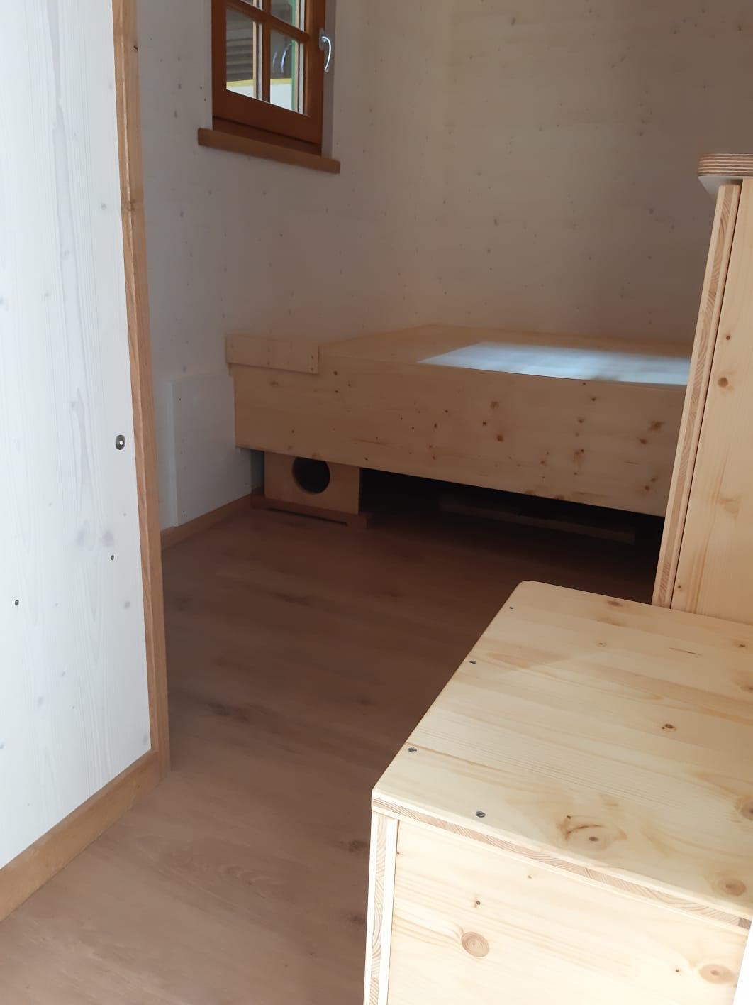 • Innen schafft Fichte mit Edelwachs-Oberfläche eine helle, wohnliche Atmosphäre – ideal für kurze wie längere Aufenthalte.